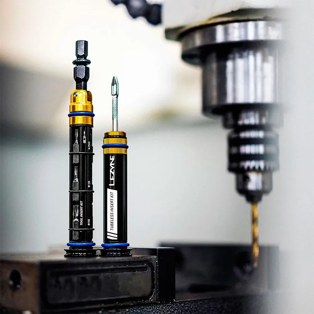 El juego de insertos de herramientas está fabricado con aluminio mecanizado ligero y duradero y cuenta con brocas de acero endurecido. El kit es fácilmente accesible para reparaciones rápidas y viene con cinco (pequeñas), ocho (medianas) u 11 (grandes) brocas de herramientas diferentes ideales para las bicicletas modernas de hoy (consulte las especificaciones a continuación).