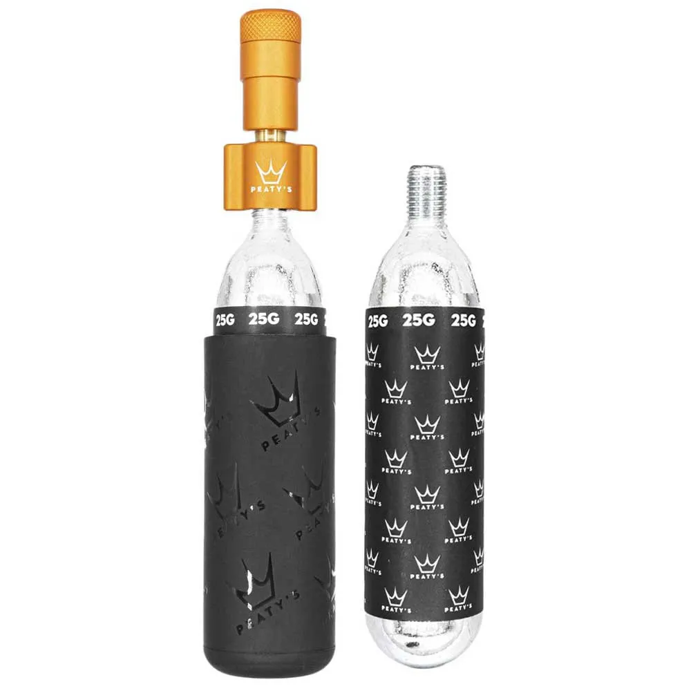 Enrosque el cartucho de CO2 completamente en la cabeza del inflador. Es posible que escuche un pequeño silbido cuando el cartucho se perfora con éxito. Si no es así, presione rápidamente la válvula y debería escuchar el gas ‘Tsssst’.