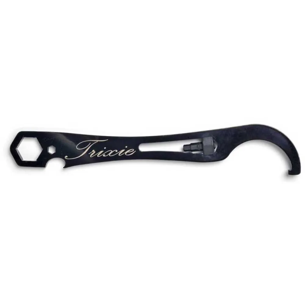 El nuevo Trixie Black tiene una punta hexagonal de 4 mm / 5 mm en un soporte de goma, llaves de boca de 8, 9, 10 y 15 mm, llave de tuercas y abrebotellas.