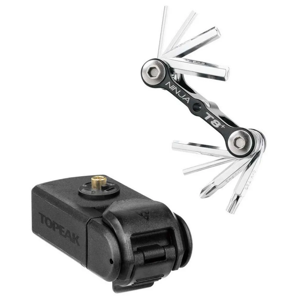 Se monta debajo de la jaula para botella de agua Ninja con soporte de jaula intercambiable o se usa solo con el soporte de marco Esta caja de herramientas resistente a la intemperie contiene una mini herramienta de 8 funciones para la reparación y el mantenimiento básicos.