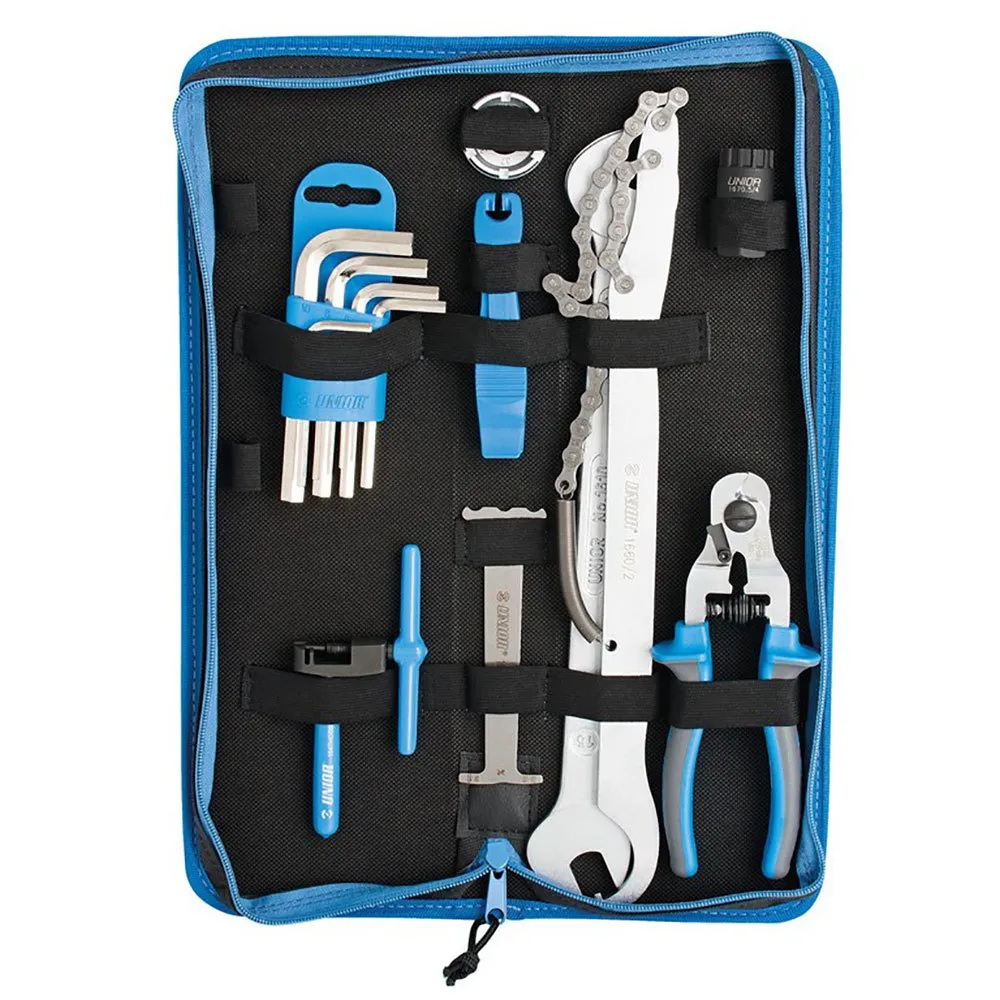 Juego de herramientas de bicicleta básico para reparaciones básicas. Útil para mantenimiento básico y pequeñas reparaciones.